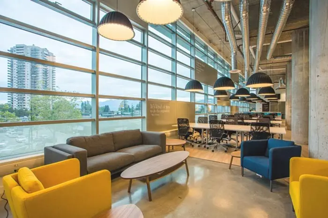 4、共享辦公空間中有各種不同的公司,因此一個多元化的公共休息空間是必須的,它也滿足了人來人往和辦公空間動靜結合的需求。